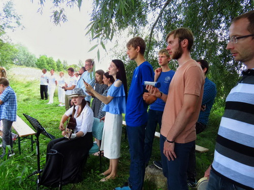 Помимо развлекательно-познавательной части была у нас еще одна цель – послужить в местных церквях. Мы всегда принимали участие в богослужении Браславской церкви: братья проповедовали, молодежь пела христианские гимны. В прошлом году по счастливой случайности мы заехали в небольшую церковь в Друйске, где познакомились с пастором и его семьей и договорились, что в следующем году приедем к ним в гости. Так и вышло – на этот раз мы участвовали в их летнем лагере, общались с подростками и помогли провести вечернюю встречу вокруг костра. Было приятно смотреть, как многие, даже неверующие ребята, с интересом слушали про Даниила и его жизнь, посвященную Богу, как через проповедь наших братьев Бог открывал этим юным сердцам что-то новое и вдохновлял их на верные решения. А в воскресенье наша команда попала на крещение двух молодых людей. Оно проходило на озере – собралась вся церковь, место крещения было красиво украшено, а мы пели гимны и славили Бога вместе с Друйской церковью и благодарили Его за непостижимую любовь и милость.